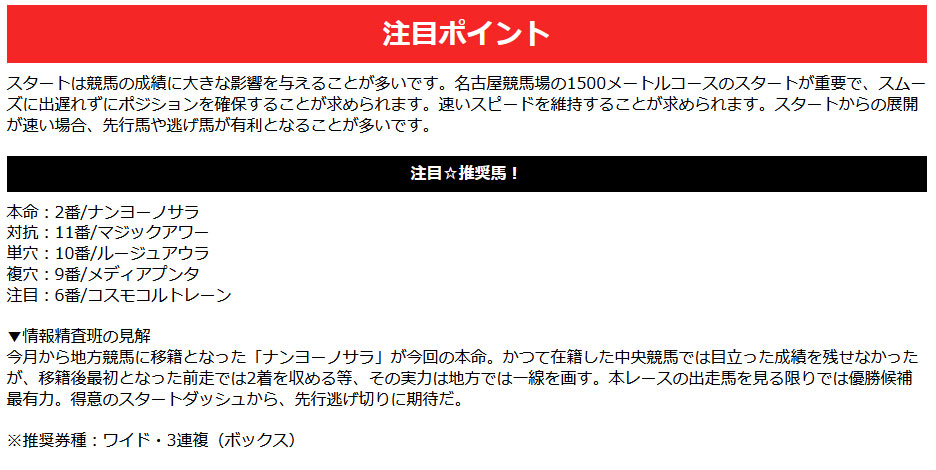 10月16日の名古屋競馬場の8Rの予想になります。