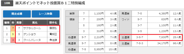上位人気で買っていましたが手広く馬を選びつつもフォーメーションで上手く馬券を買っていたので16点で点数を抑えつつ馬券を当てることができました。