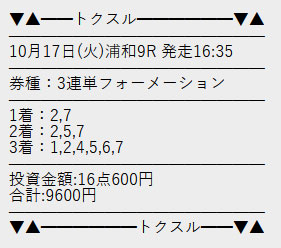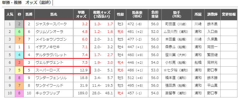 浦和競馬場の9Rの予想です。