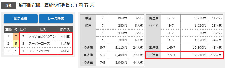 7-5-1で的中!!!3連単万馬券が的中しました!
