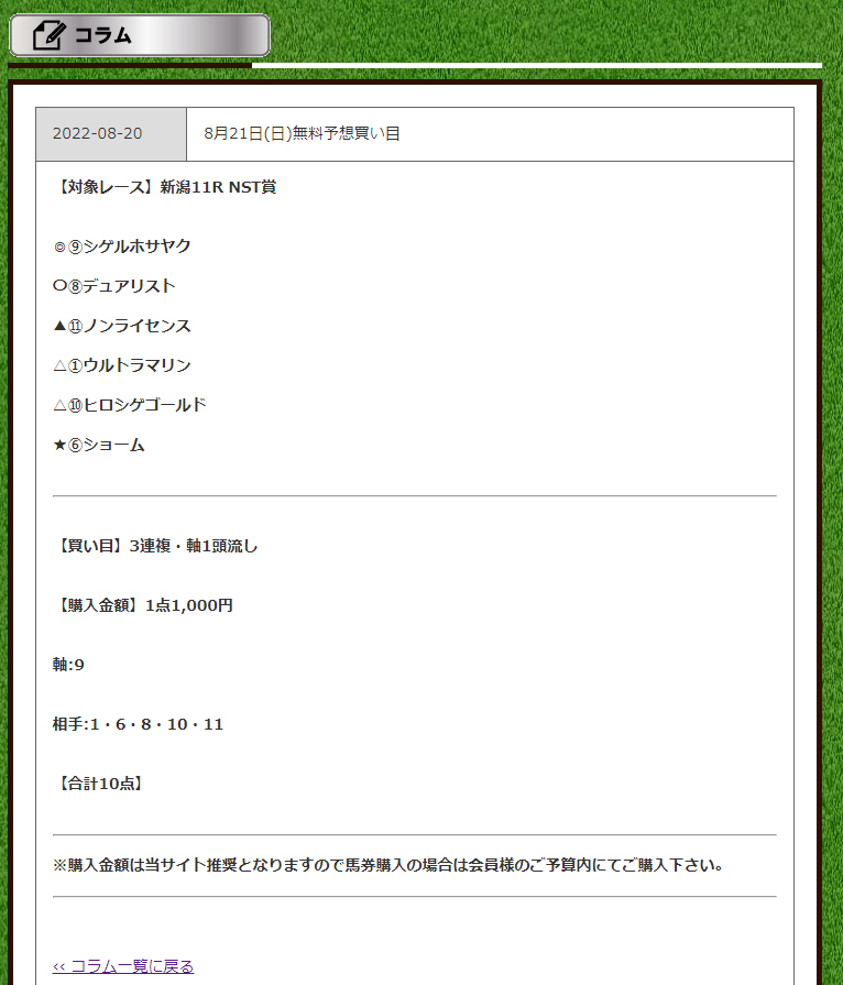 レース結果が出た後、ウィンロードに本レース(新潟11R NST賞)のコラムを再度確認しに行ったが、なんとコラムが消えていたのである…!