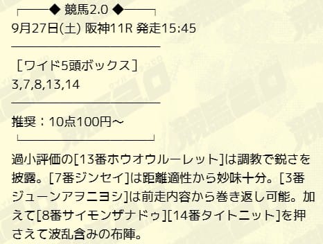 無料予想2週連続的中で紫苑ステークス取れました\(^o^)/